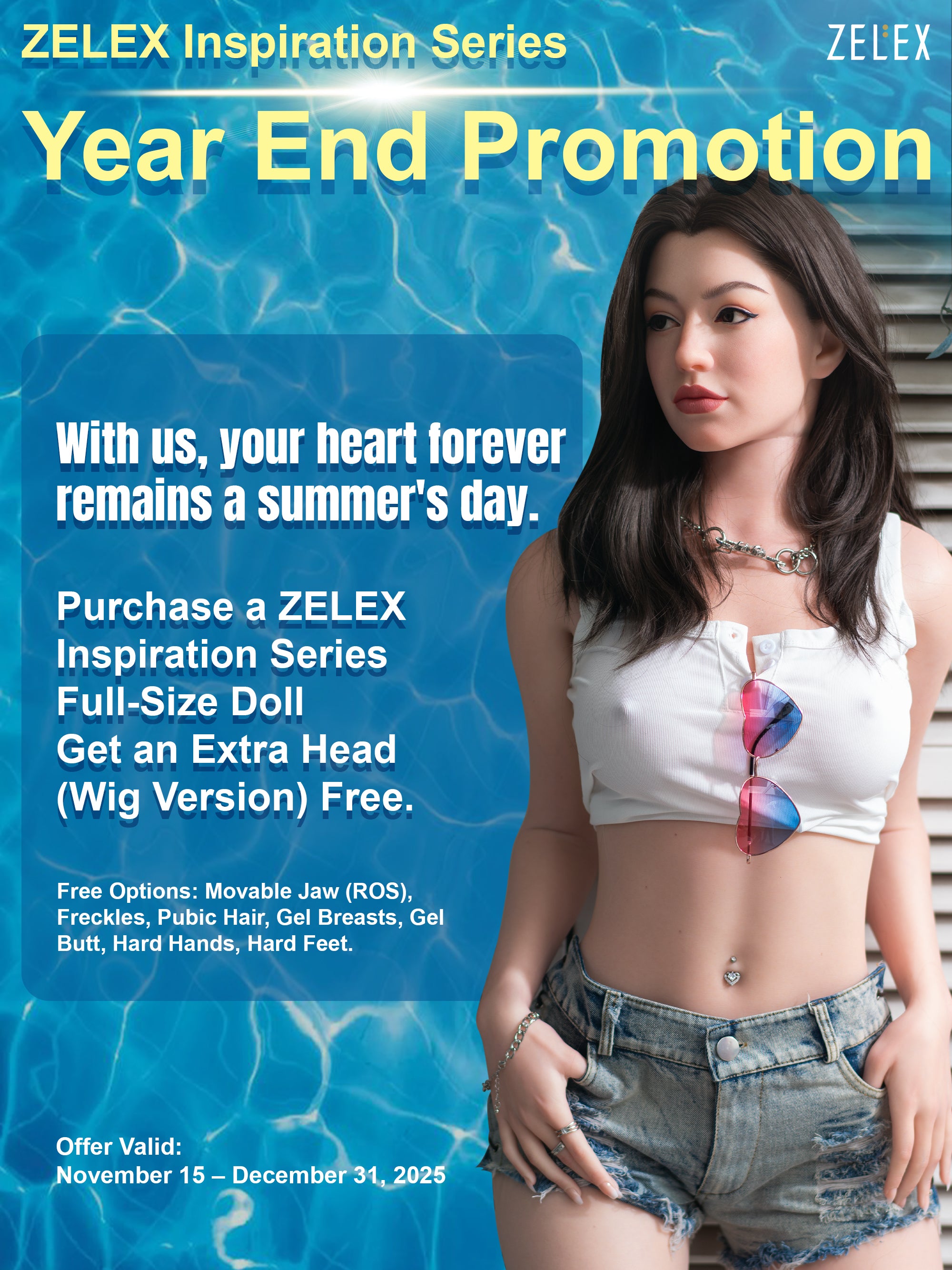 ZELEX's new Inspiration Series retains its signature detailed makeup and body features while introducing key upgrades based on customer feedback. It includes a realistic mouth with a movable jaw, softer breasts, kneadable buttocks, and a split vagina with replaceable labia. A new color-sealing process enhances durability, keeping the doll’s makeup vivid and long-lasting.